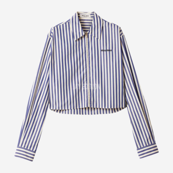 미우미우 스트라이프 포플린 셔츠 아이보리 블루 > SHIRT