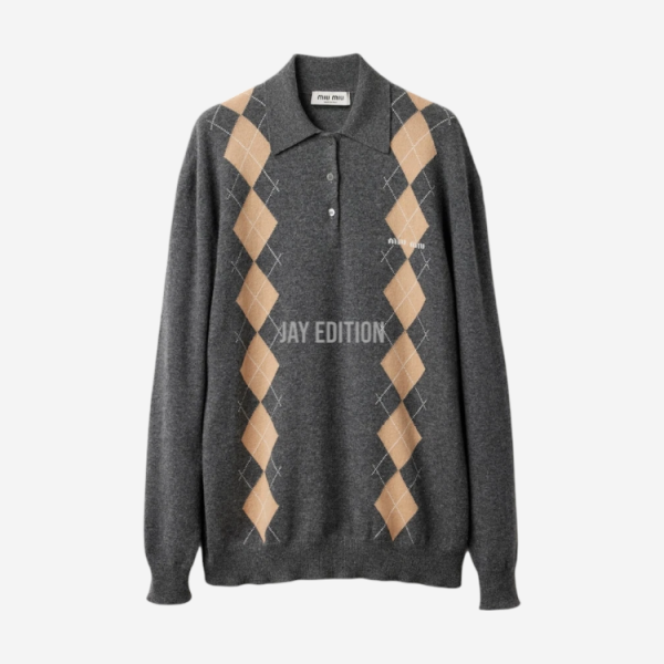 미우미우 캐시미어 니트 폴로 슬레이트 그레이 > TOP