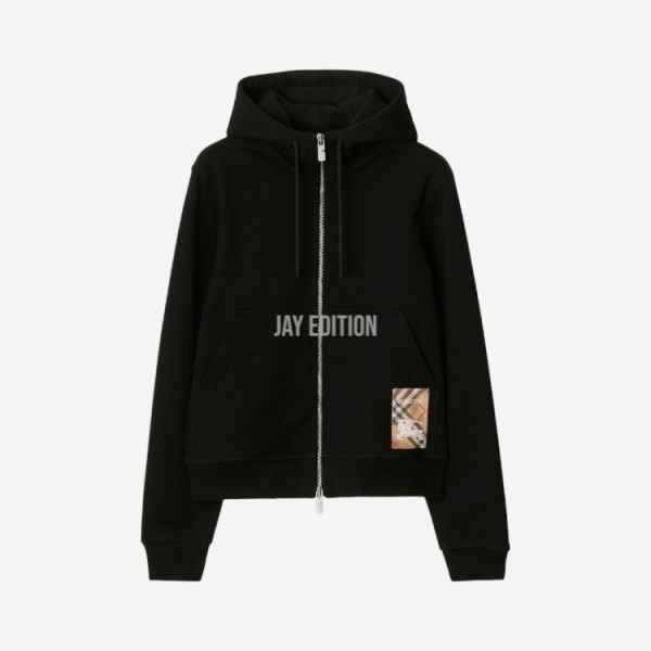 버버리 체크 라 벨코튼 지퍼 후드 티셔츠