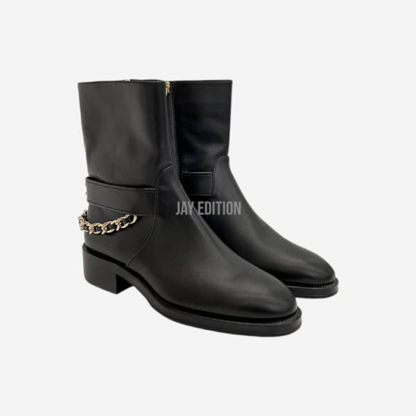 샤넬 백로고 체인 앵클 부츠