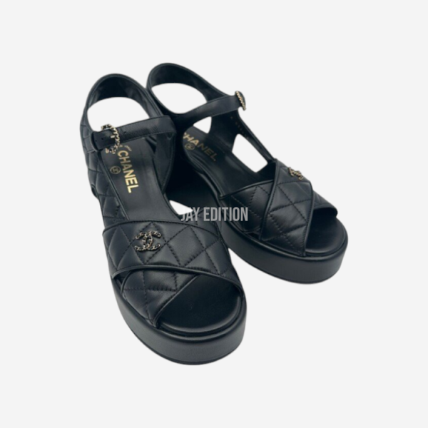 샤넬 램스킨 퀄팅 CC 플랫폼 샌들