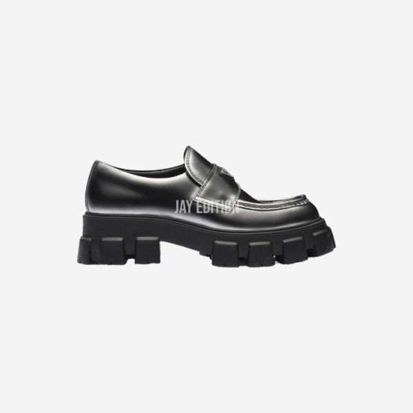 프라다 모놀리스 브러시드 블랙 실버 로퍼