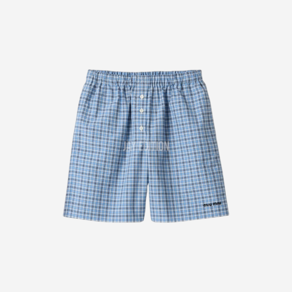 미우미우 체크 포플린 복서 쇼츠 셀레스트 블루 > BOTTOM
