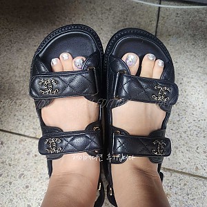 샤넬벨크로샌들 눈으로 보고만있다 국내제고로 운좋게 구매했습니다로고도 가죽도 흠잡을게없네요샤넬은 오픈런으로 …